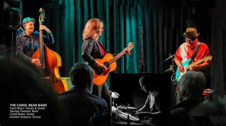 The Carol Bean Band play a mix of jazzy blues with a heavy helping of original songs and stylish instrumentation. Carol Bean – vocals and guitar, Costa Botes – guitar(s) and George Packard – upright bass.